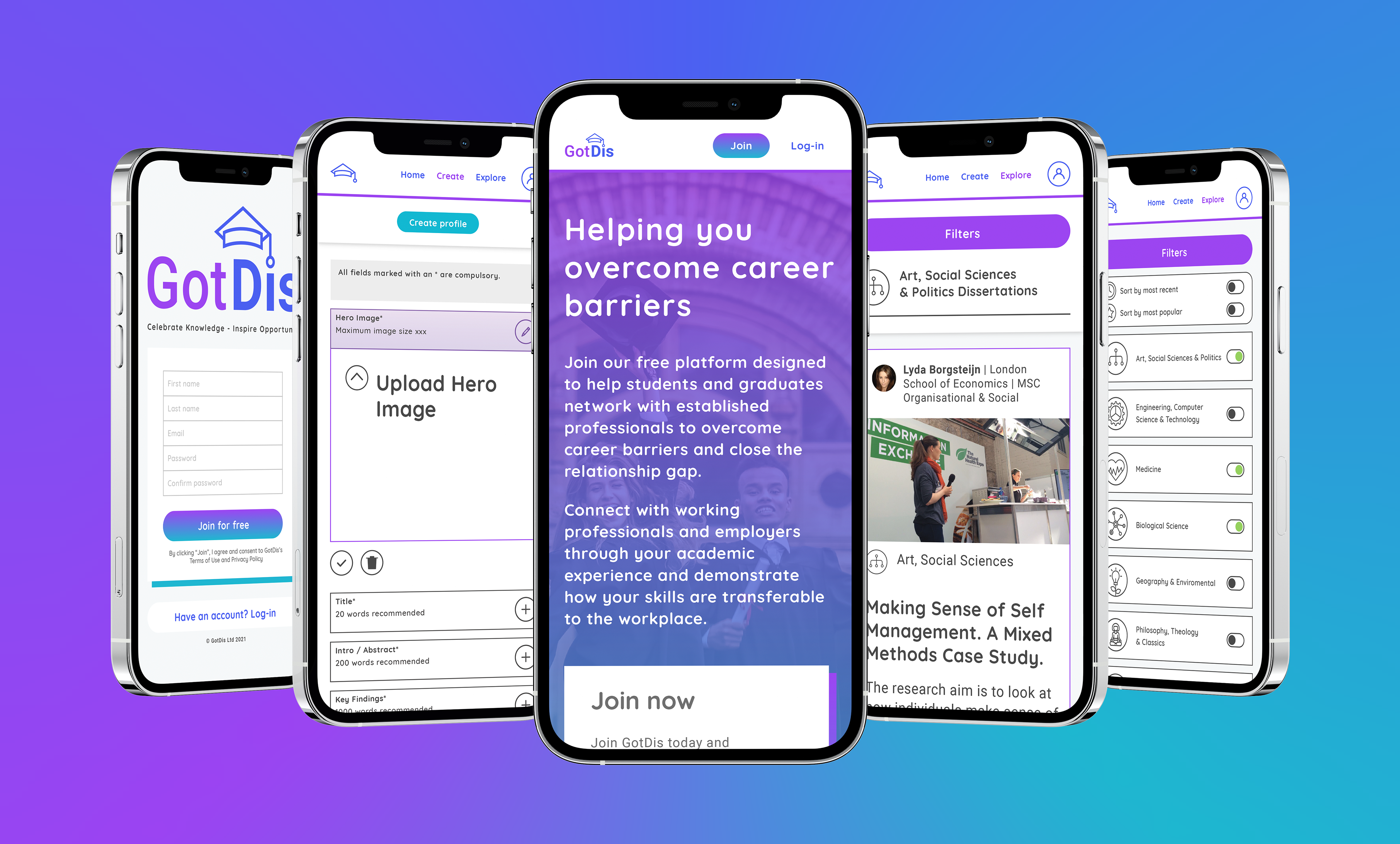 What began as pen-and-paper sketches evolved into a comprehensive digital ecosystem for GotDis' first website iteration. I led the UX/UI journey from basic wireframes to a high-fidelity landing page designed to optimise student conversions. I designed the entire website using Adobe XD.