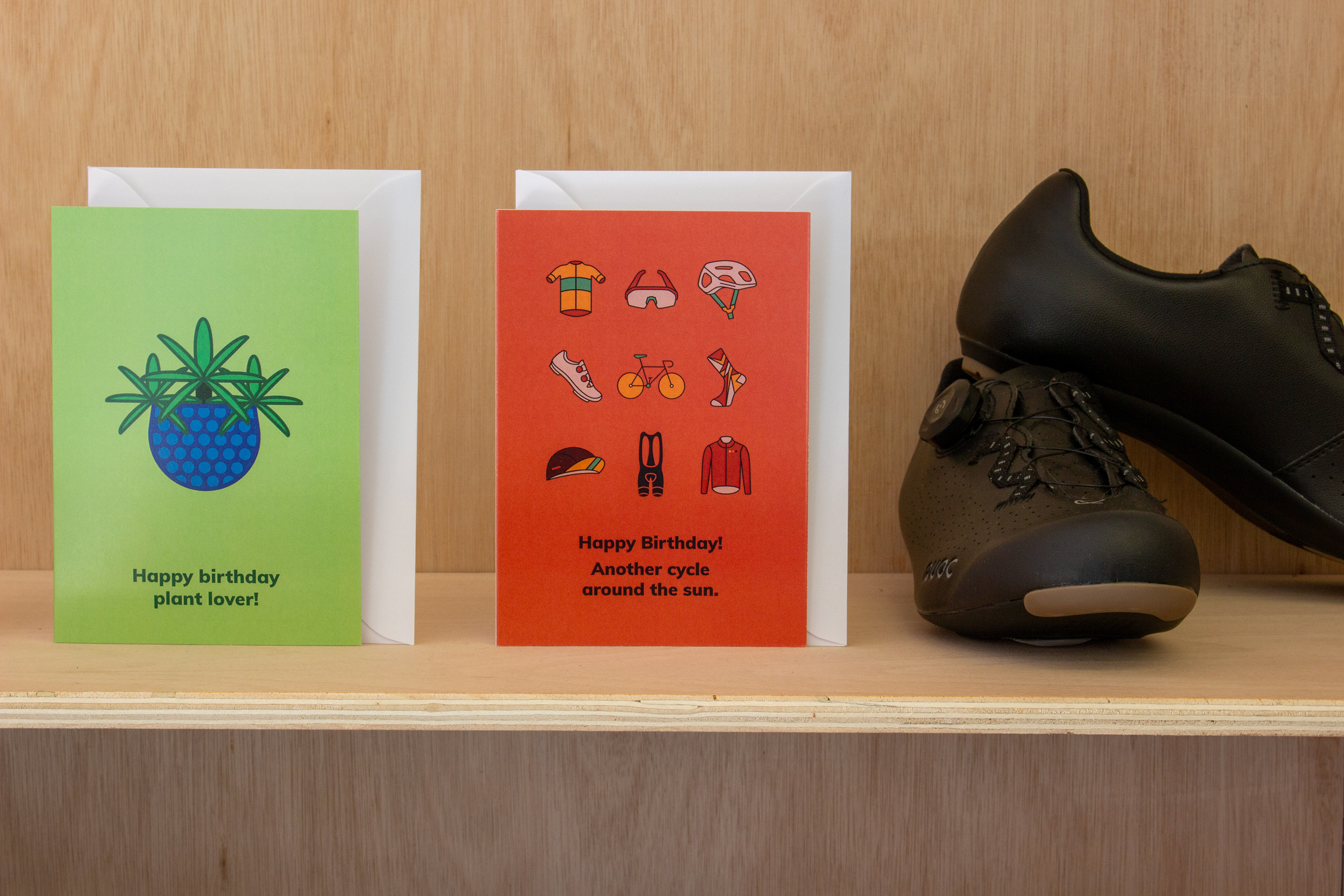 Cards on display at The Guilty Cyclist